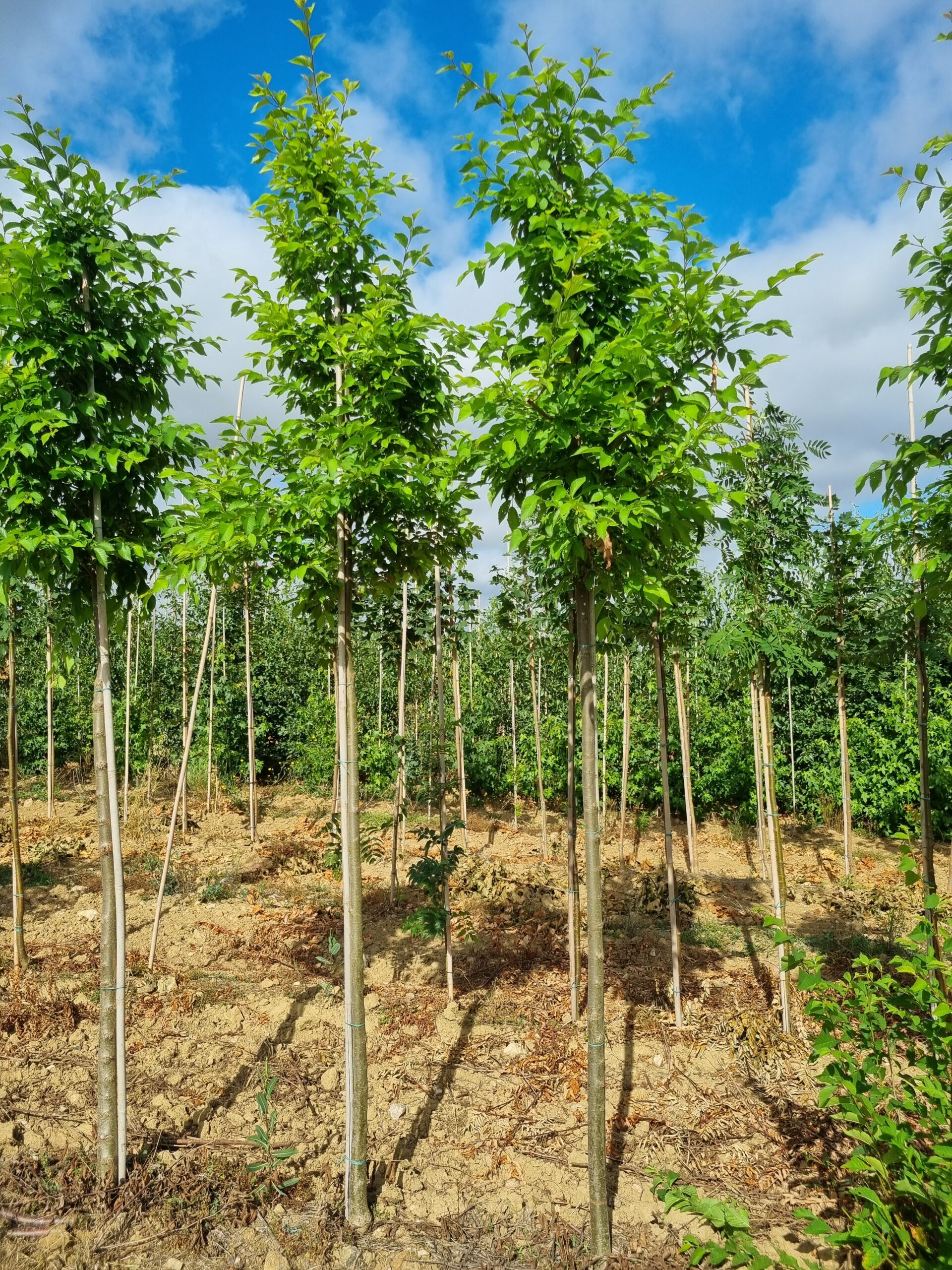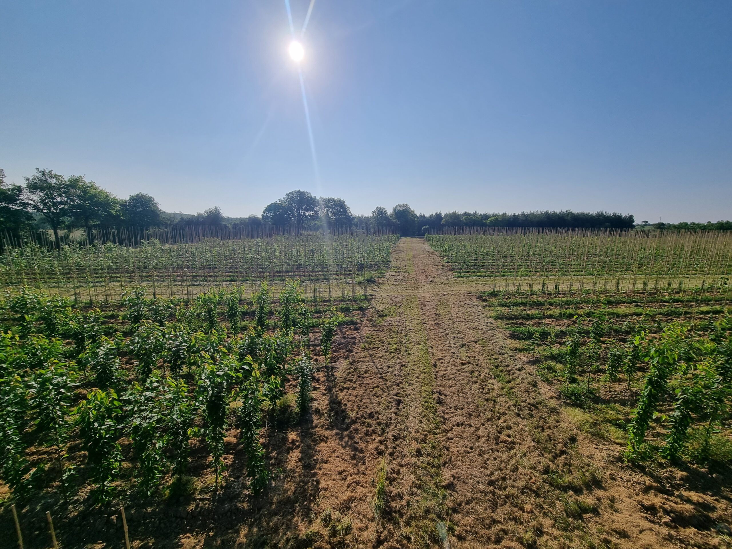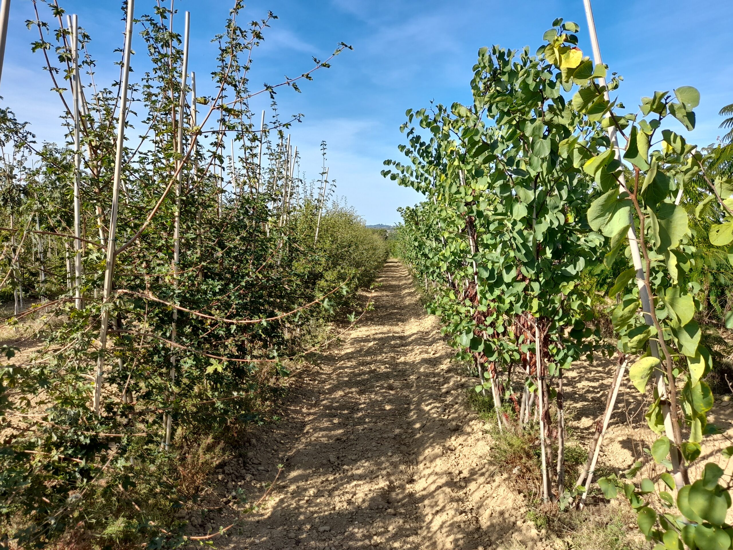 En janvier-février les jeunes plants sont réceptionnés, taillés et mis en chambre froide avant la plantation. Ceux-ci sont ensuite plantés à l’aide d’une planteuse qui permet une juste répartition des plants sur rang et entre rang.