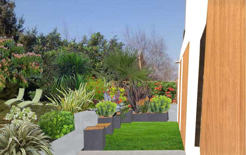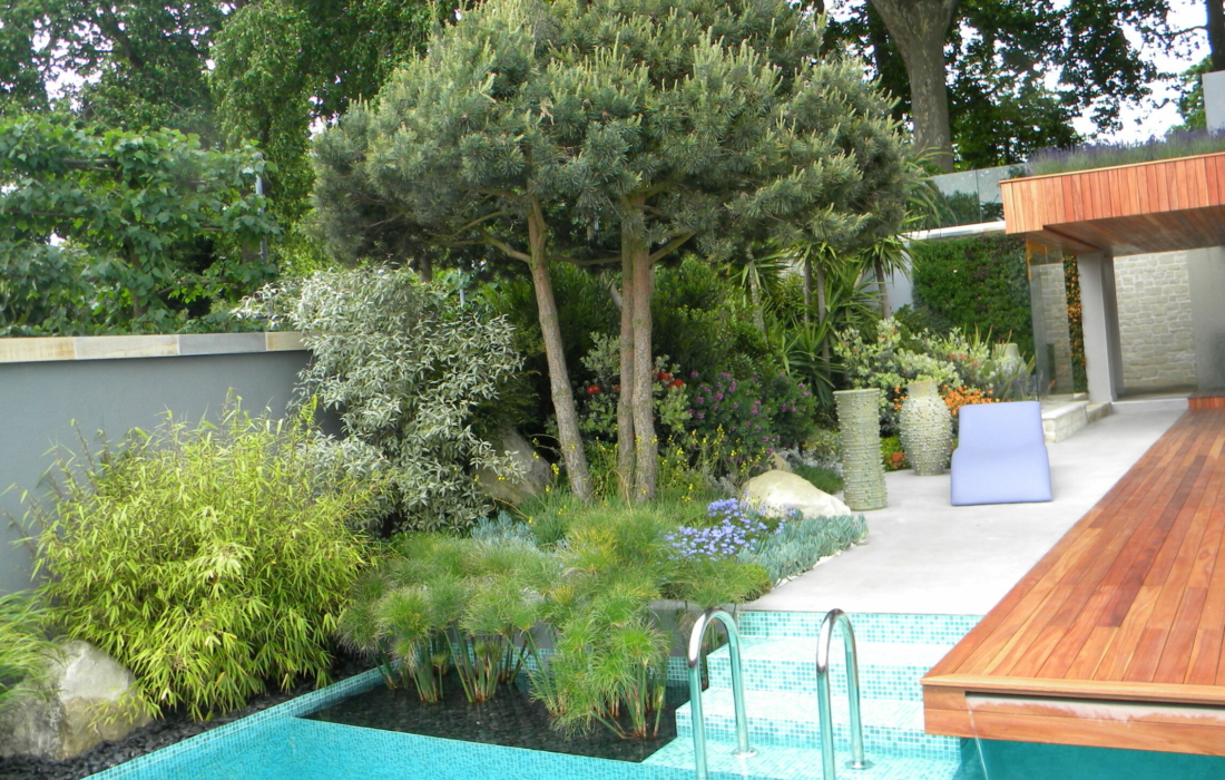 Espace dégagé, cocooning, … pour vos siestes du dimanche, pour vos repas entre amis, …Il faut penser à son utilisation pour y associer les végétaux adaptés. Ainsi, sur votre pergola, éviter les lianes aux floraisons estivales dégageant un enivrant attirants tous nos amis les butineurs si vous avez décidé d’y installer votre table pour vos repas. Ainsi, au bord de votre chaise longue, éviter les piquantes exotiques type Agave, qui seront vous réveiller si vous les approchez de trop près. Ainsi, dans mes bacs, je prévois des plantes qui ne seront pas trop gourmandes en eau, et résistante en hiver. Bref, un espace bien pensé permet de bien en profiter.